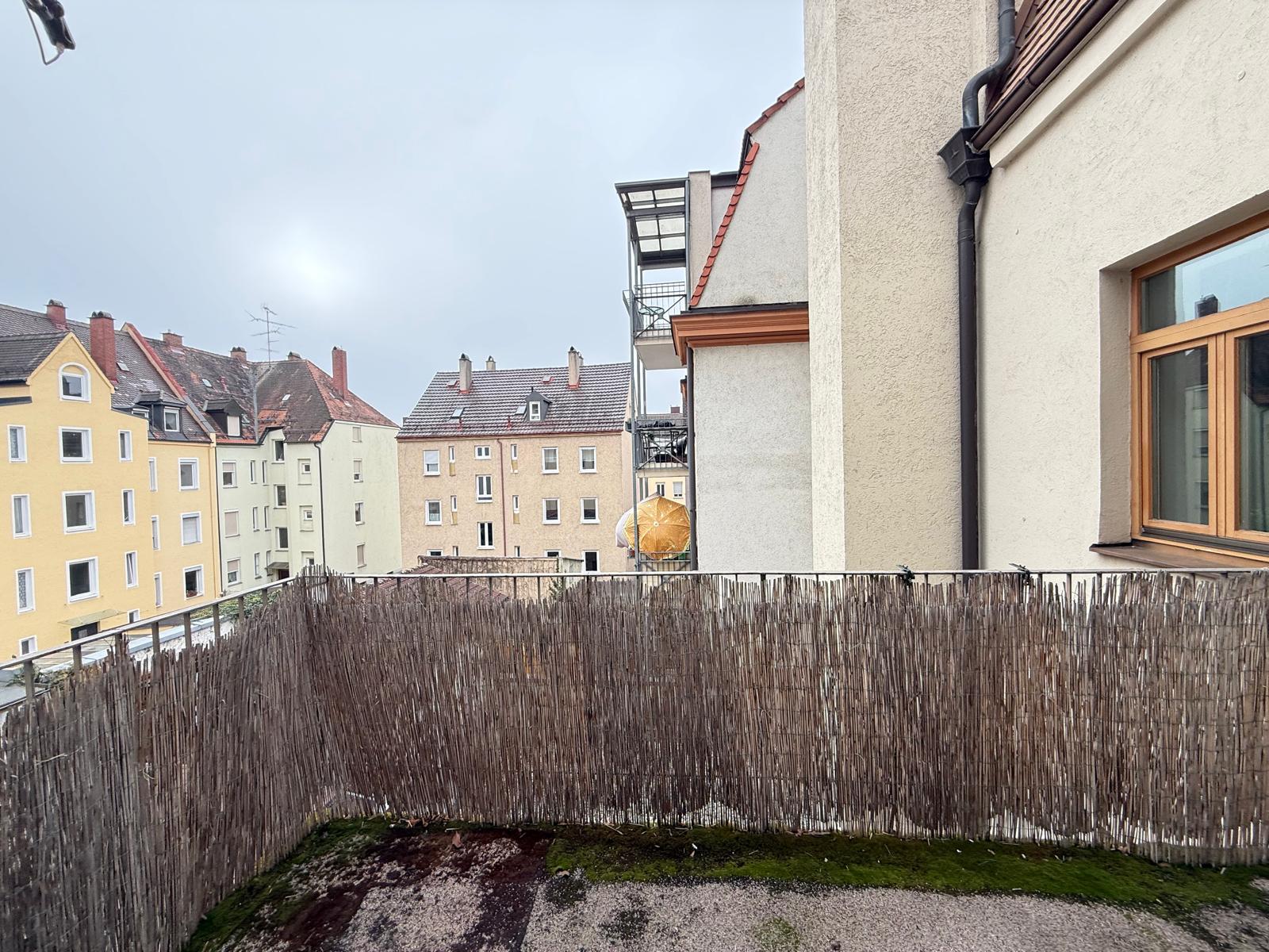 Der großzügige Balkon liegt ruhig zum Innenhof und bietet eine seltene Kombination aus: