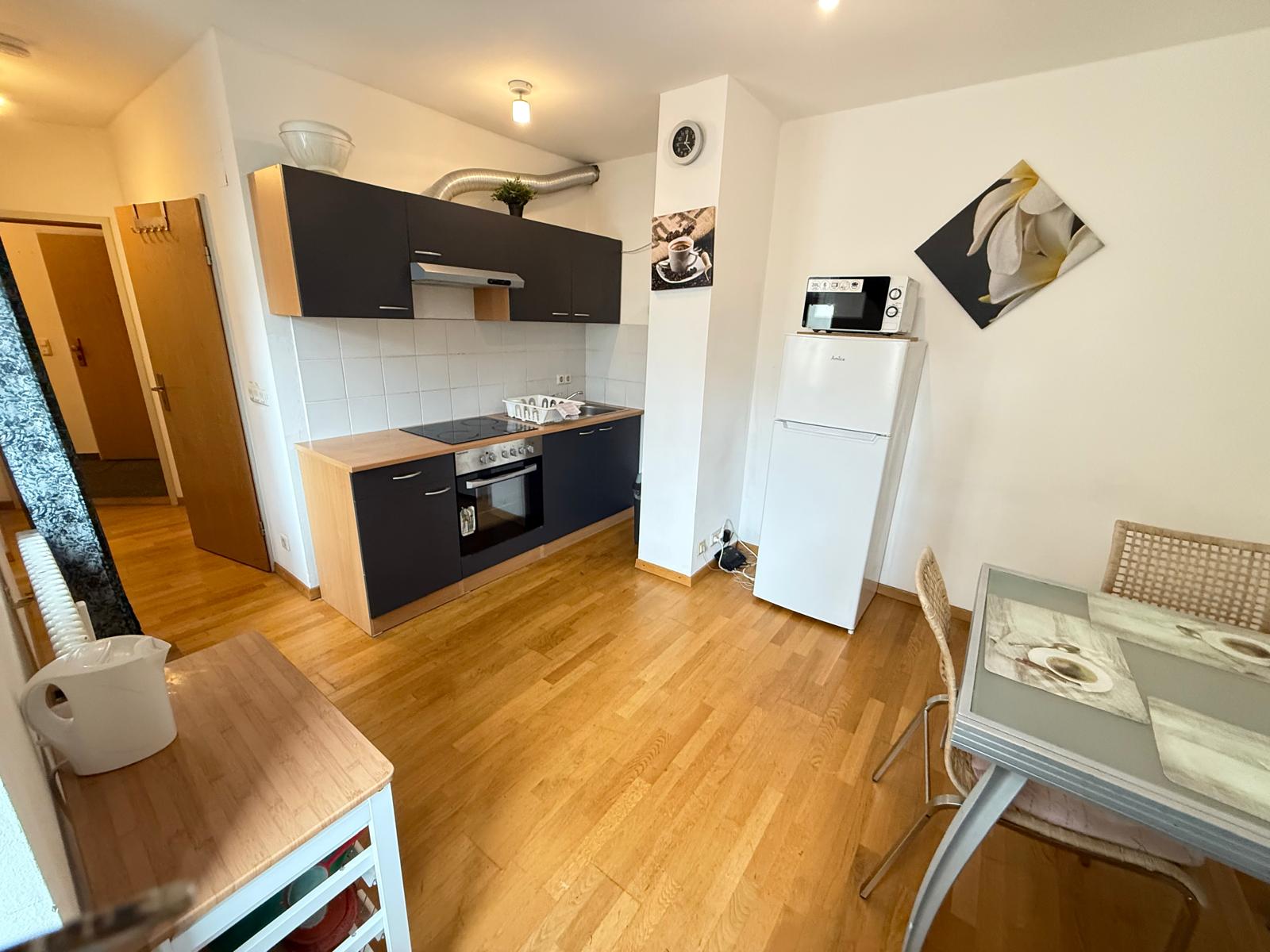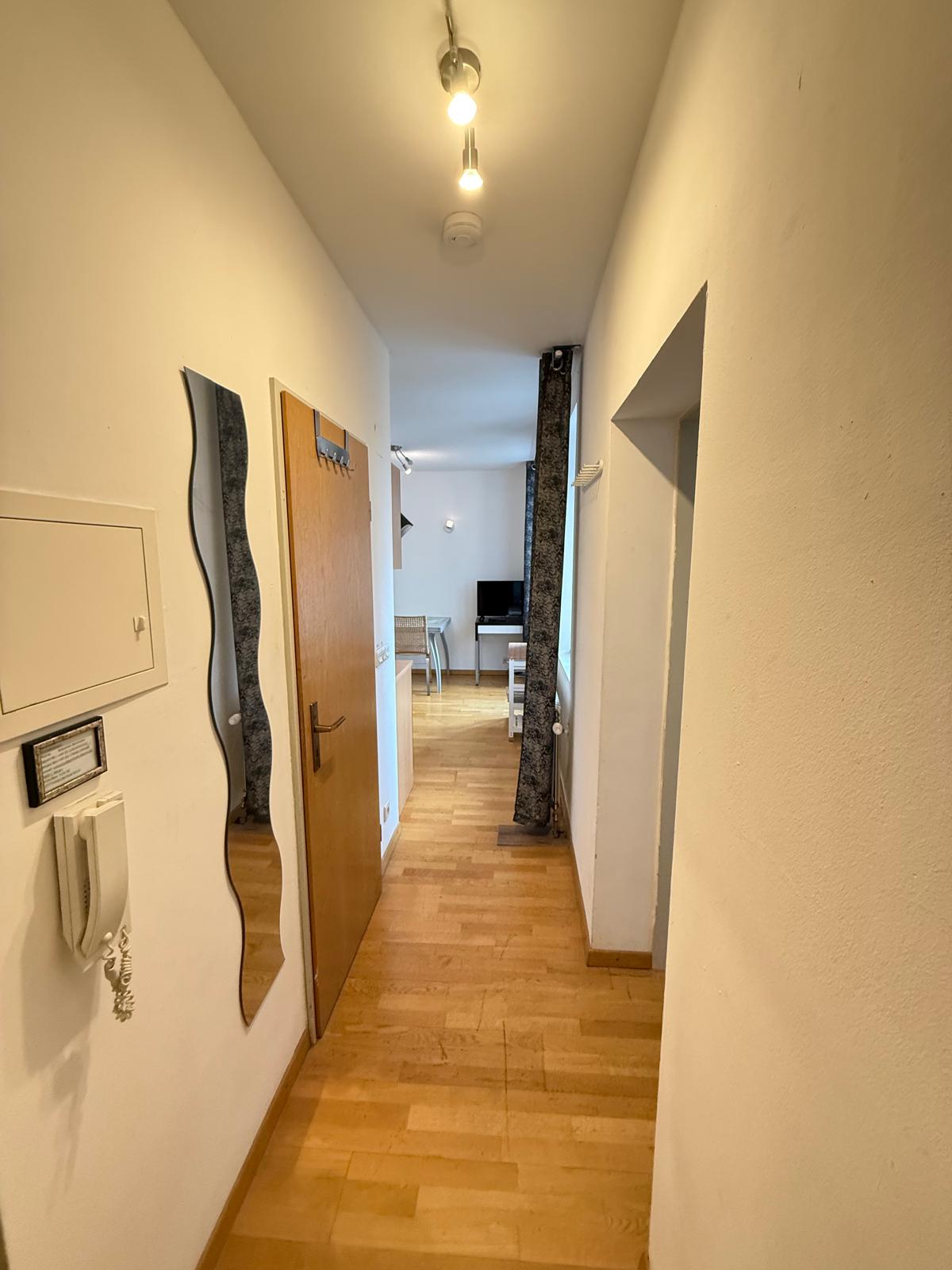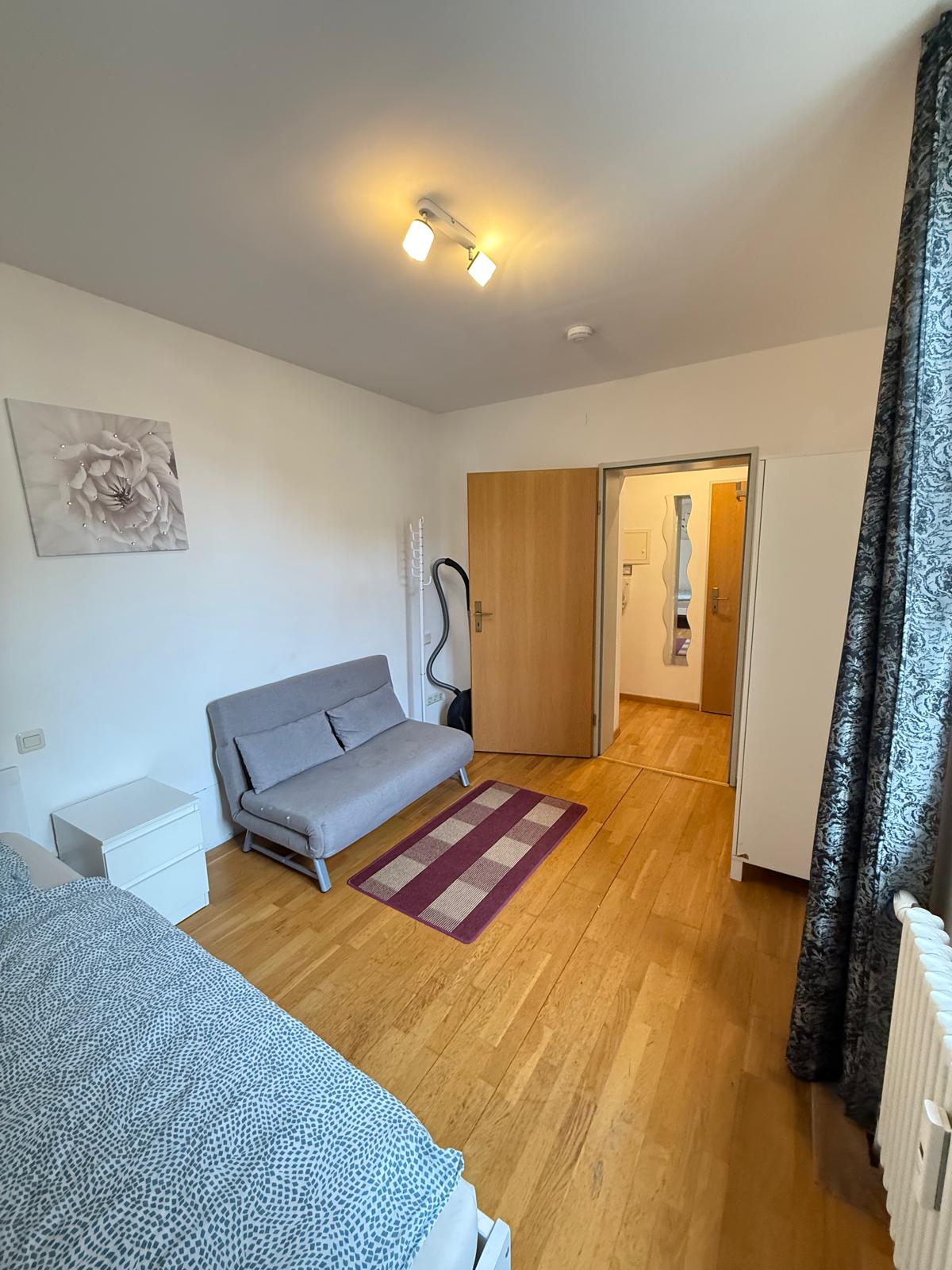 Rechter Hand befindet sich ein separates Zimmer, das sich ideal als Schlafzimmer eignet. Das auf den Bildern dargestellte Mobiliar ist bereits im Kaufpreis enthalten – ein echtes Plus für Eigennutzer oder Vermieter.
