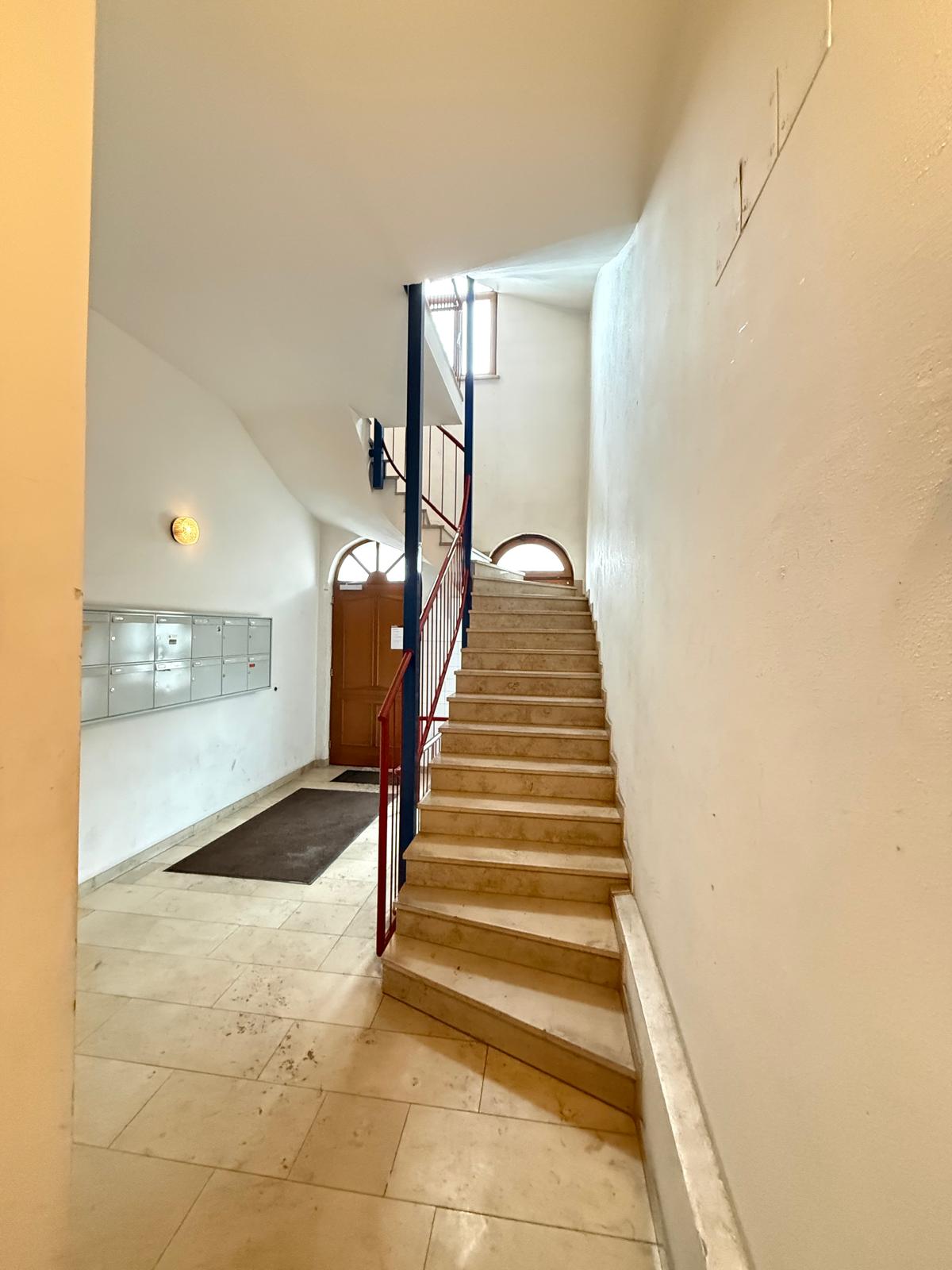 Das stilvolle Altbauhaus überzeugt durch ein ansprechendes Treppenhaus sowie einen Aufzug, der komfortabel in den zweiten Stock führt. Hier angekommen, öffnet sich die Wohnung und empfängt Sie mit einem praktischen Grundriss