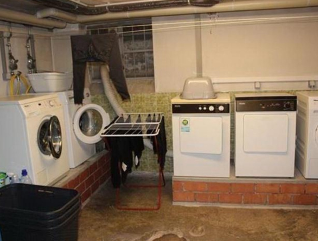 Gemeinschaftliche Waschküche mit eigenem Stellplatz im Keller