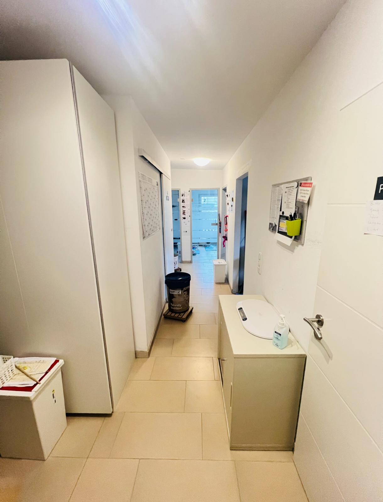 Das Büro liegt im 1.OG und hat eine Einbauküche, Dusche, WC.