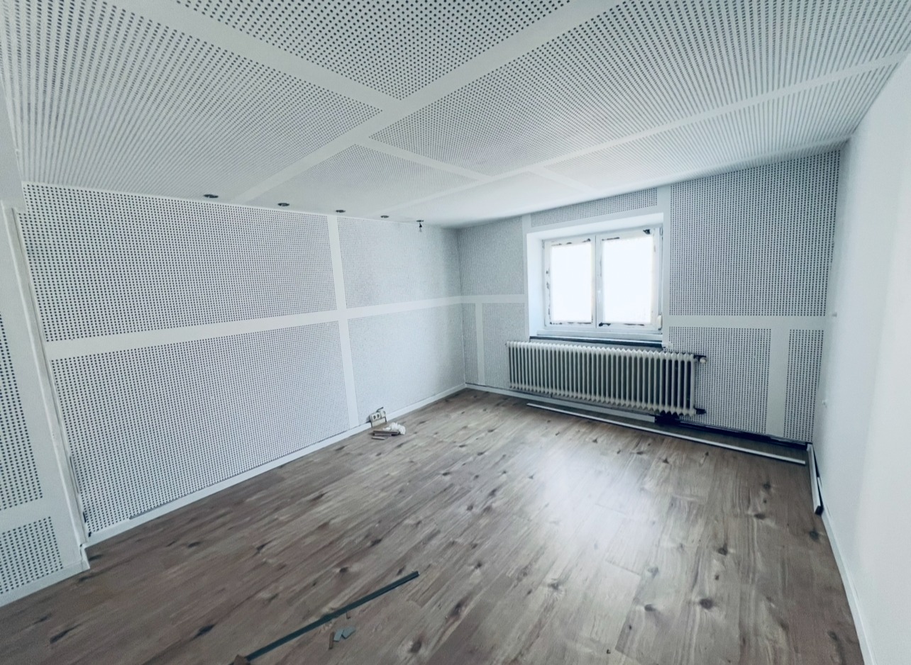 – Wände und Decken mit Rigipsplatten verspachtelt