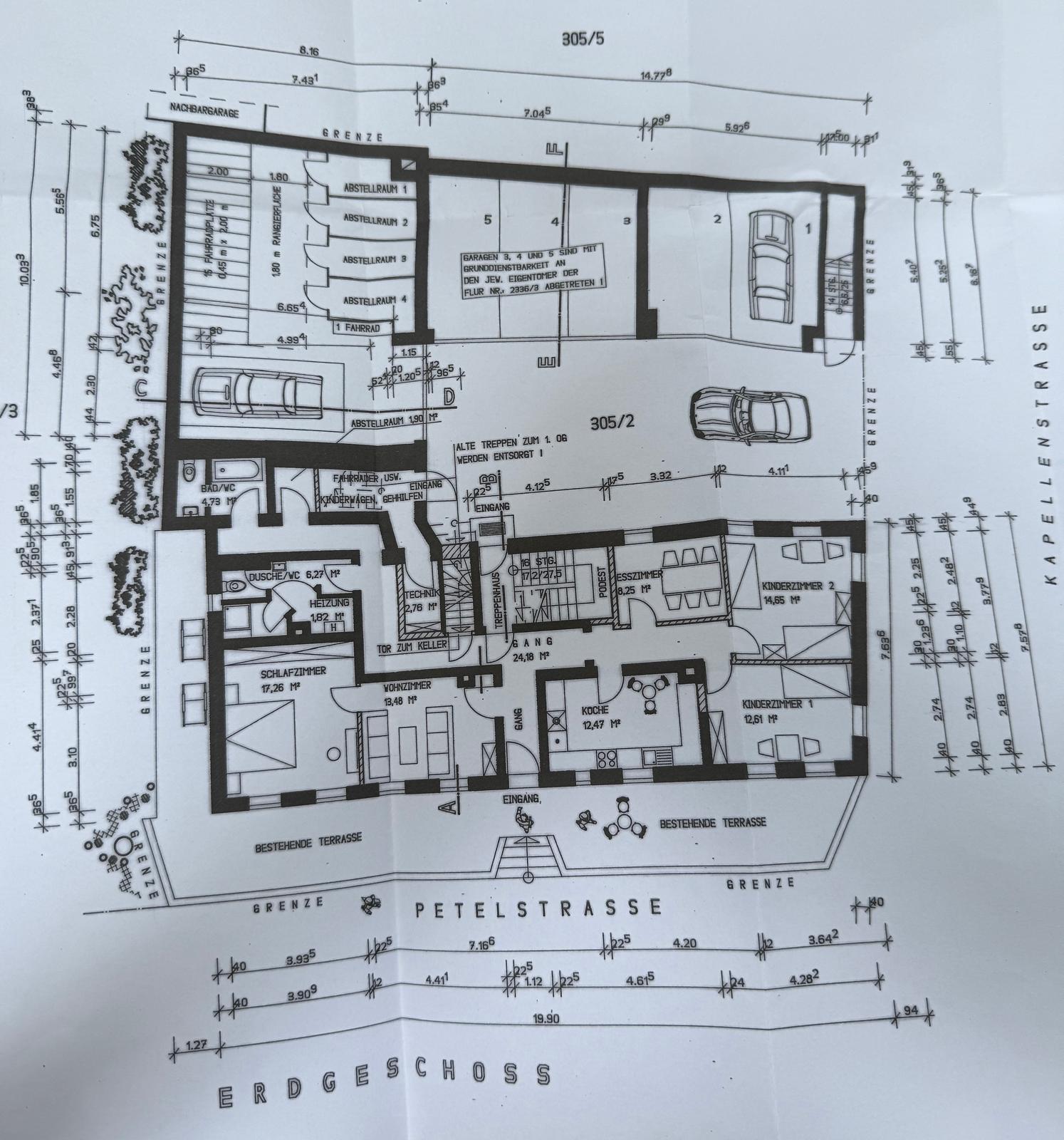 – Bestehend aus 3 Garagen im Erdgeschoss und Dienstbarkeit für weitere 3 Garagen für Nachbar vorhanden