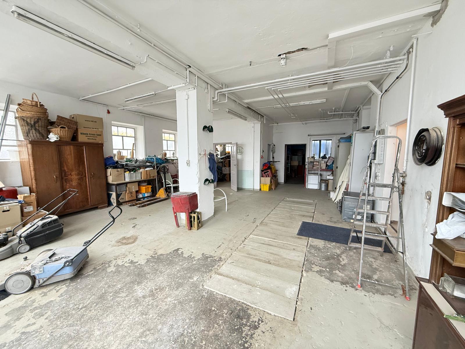 Die großzügige Fläche ermöglicht flexible gewerbliche Nutzung oder kann alternativ als erweiterte Lagerfläche dienen.