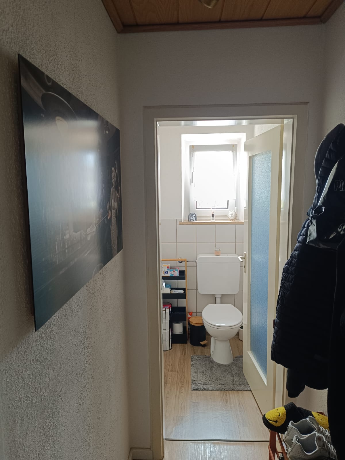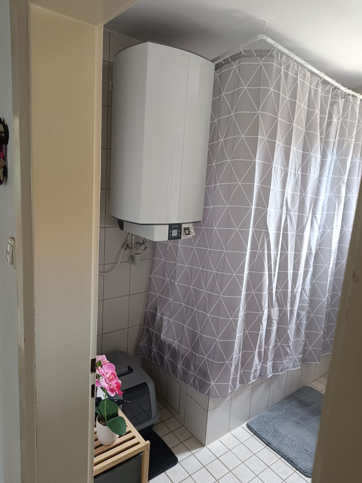 Das Tageslichtbad mit 5,6 qm ist modern gefliest und mit einer Badewanne ausgestattet. Die Warmwasserversorgung erfolgt über einen Boiler im Bad.