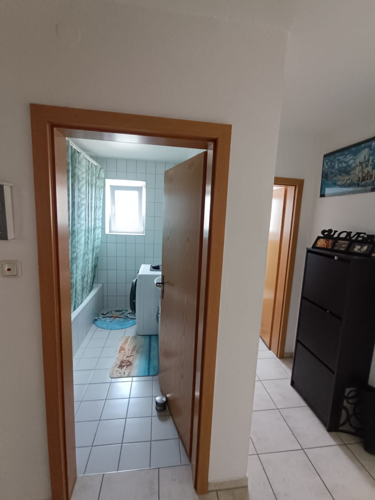 Das Tageslichtbad mit 5,6 qm ist modern gefliest und mit einer Badewanne ausgestattet. Die Warmwasserversorgung erfolgt über einen Boiler im Bad.